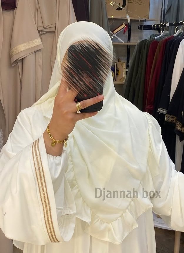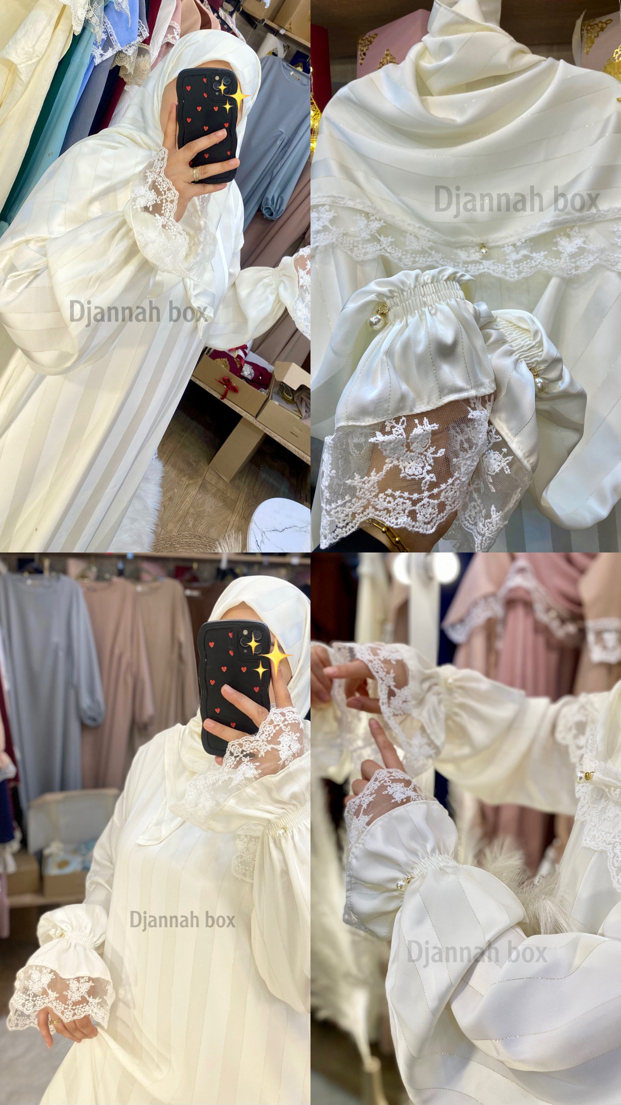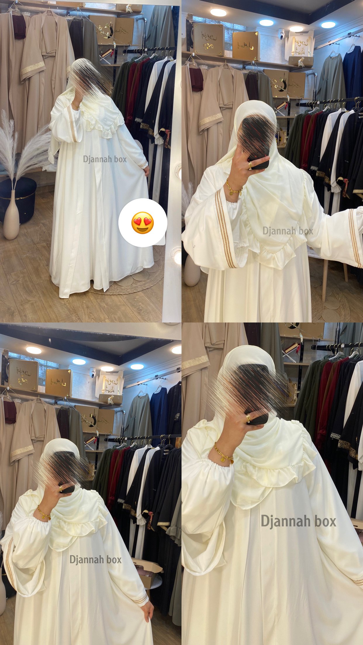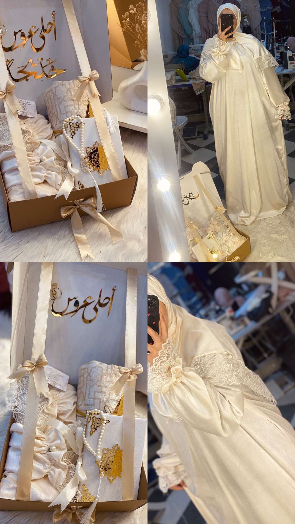 عباية بيضاء بقطعيتين تخلي يدين مستورين بقماش خامة أولى قصتها و تفصيلها خلاولها الاكثر طلبا