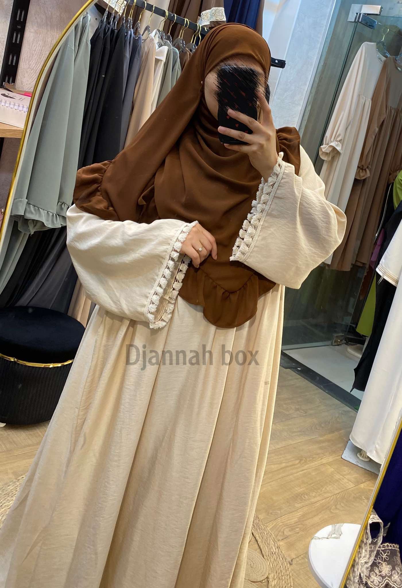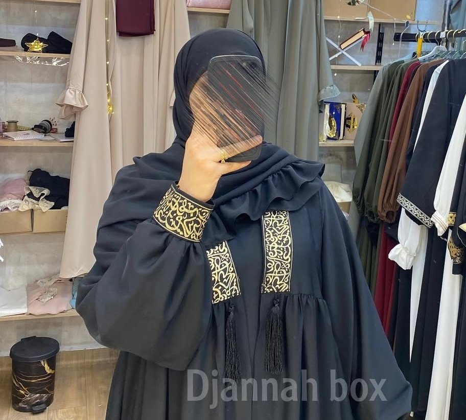 عباية تلبسيها تحسي روحة فراشة انيقة مستورة قصتها كلها انوثة 😍 تلبسيها متحوسيش على ازرار او حزام ، يديها عراض لكن محكومين بخياطة حتى و طلعي يدك تبقى مستورة