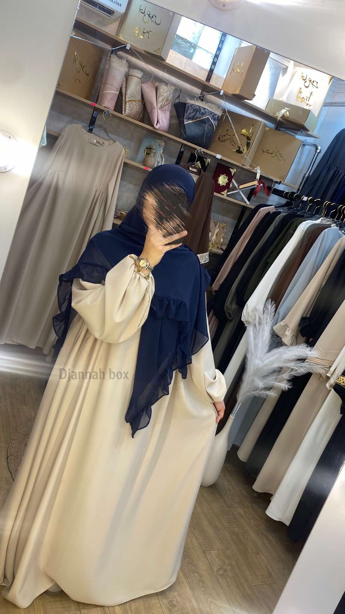 عباية بقصة كلوش اليدين بقماش كراب فولار و خمار ايضا